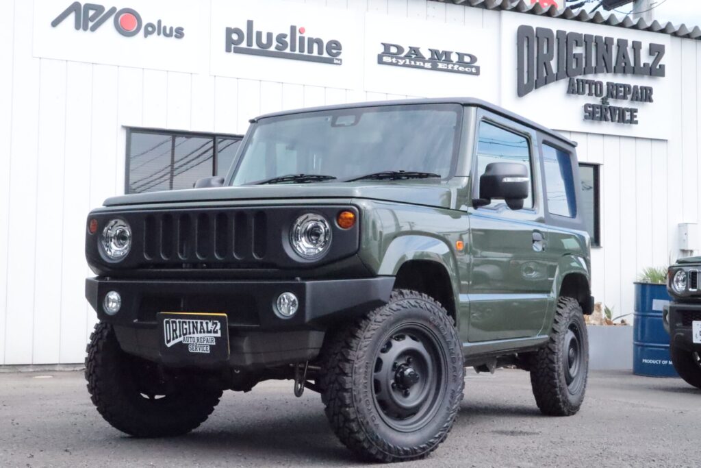 APIOパーツを使用し、シンプルながら無骨な雰囲気を持つカスタム。見た目、乗り心地もバッチリの正統派カスタムジムニー。