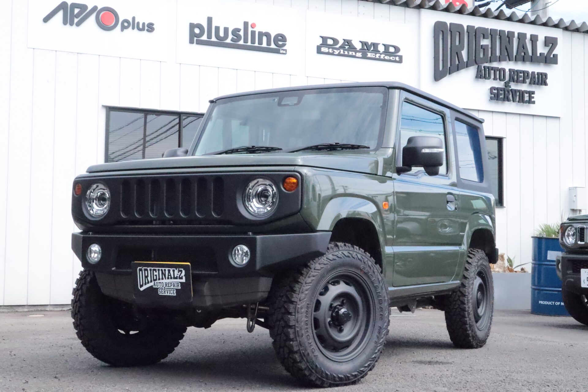 APIOパーツをふんだんに使用し、ルーフからリアゲートにかけてラプター塗装を施したワイルドなジムニー。