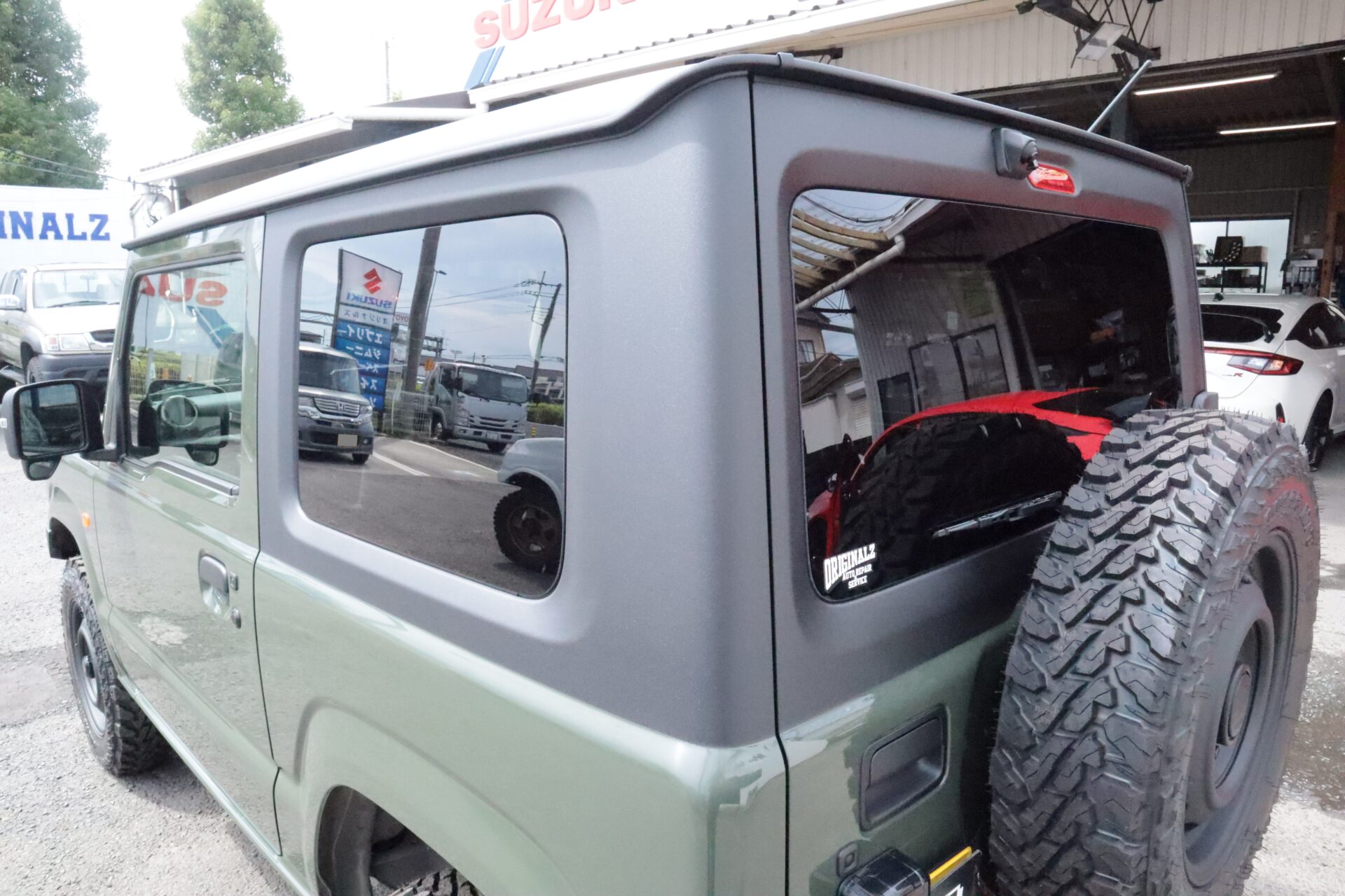 見た目の印象が大きく変わるルーフ→リアゲート塗装。無骨な雰囲気が漂うジムニーになりました。