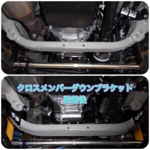 クロスメンバーはノーマルのまま使用するとプロペラシャフトが当たってしまうのでメンバーダウンブラケットを取り付けます!