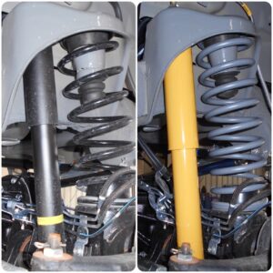 イエローが特徴的なモンローショックを使用したリフトアップキットですね(^^♪